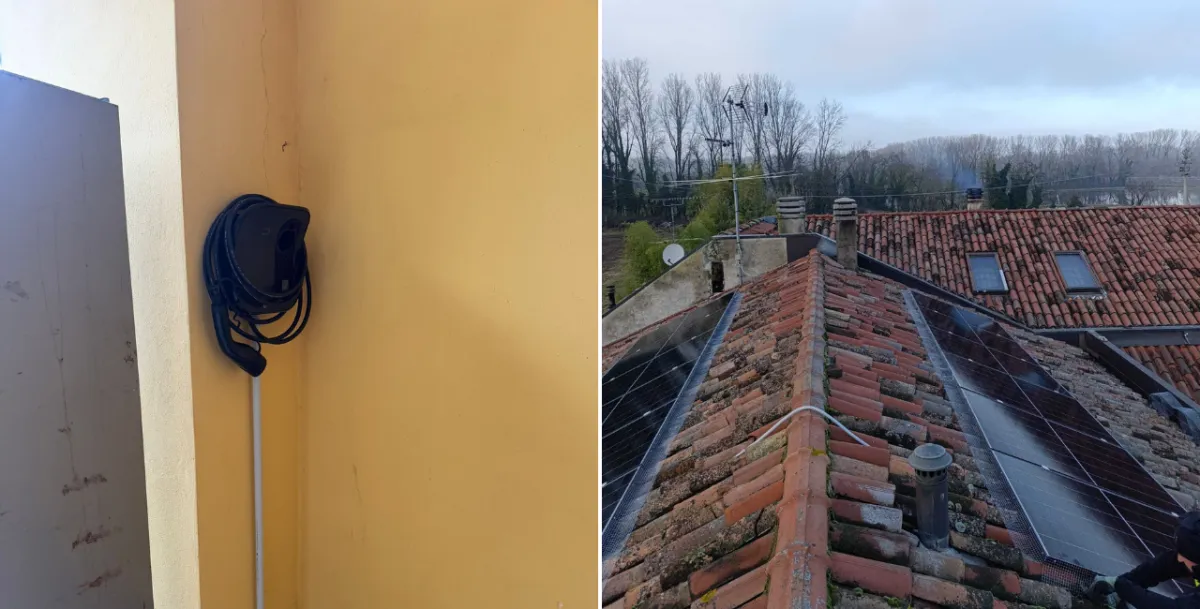 Bolletta di €100/mese e consumi in rapida crescita per la nuova auto ibrida e il riscaldamento a pompa di calore. Per Stefano abbiamo installato un impianto da 6,58 kWp con ottimizzatori e accumulo da 10,24 kWh. Oggi il sistema copre l'80% del suo fabbisogno, producendo circa 6.400 kWh all'anno.