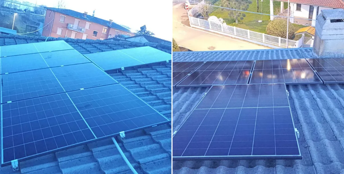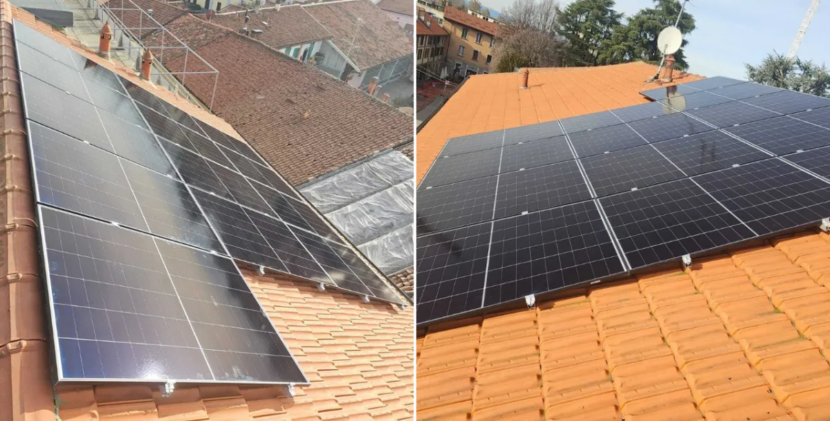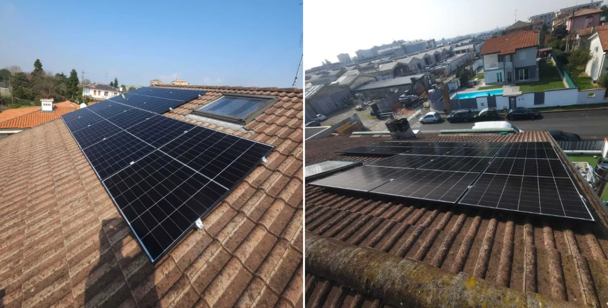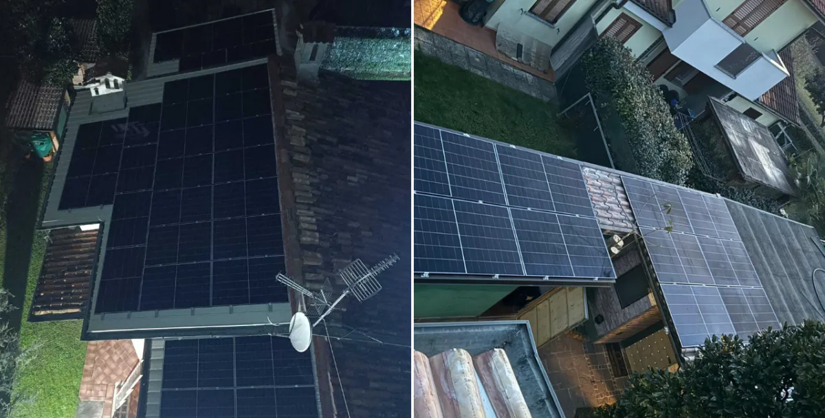 Due abitazioni vicine con obiettivi diversi: Nino cercava un investimento per l'immobile, mentre Piera voleva abbattere una spesa di circa €130/mese. Per i Buzzoni abbiamo installato due impianti gemelli da 3,29 kWp con accumulo da 5,12 kWh, garantendo a ciascuno fino all'85% di autosufficienza e circa 3.200 kWh prodotti all'anno.