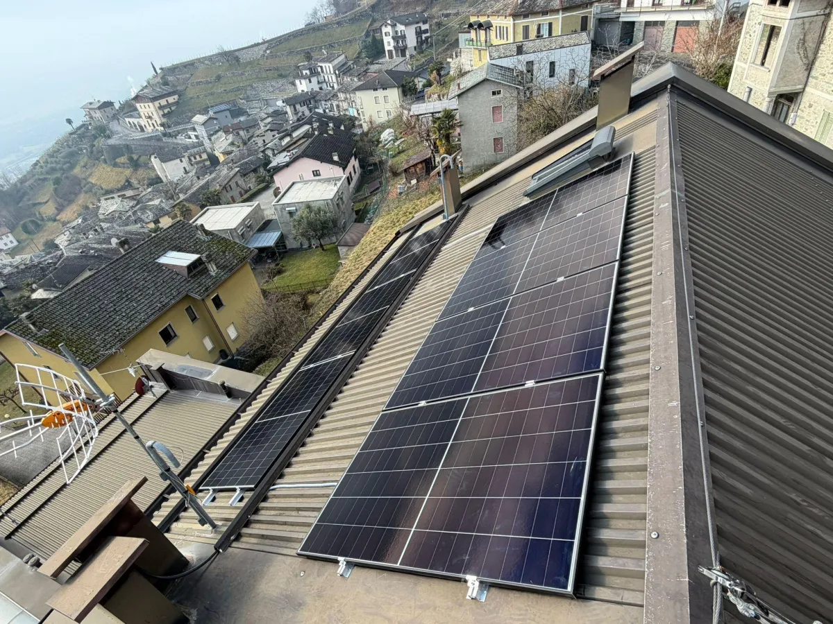 Un impianto fotovoltaico completo con accumulo da 5,12 kWh, realizzato per Pamela Gatti di Castione Andevenno, per ridurre i costi energetici e aumentare l'indipendenza dalla rete.