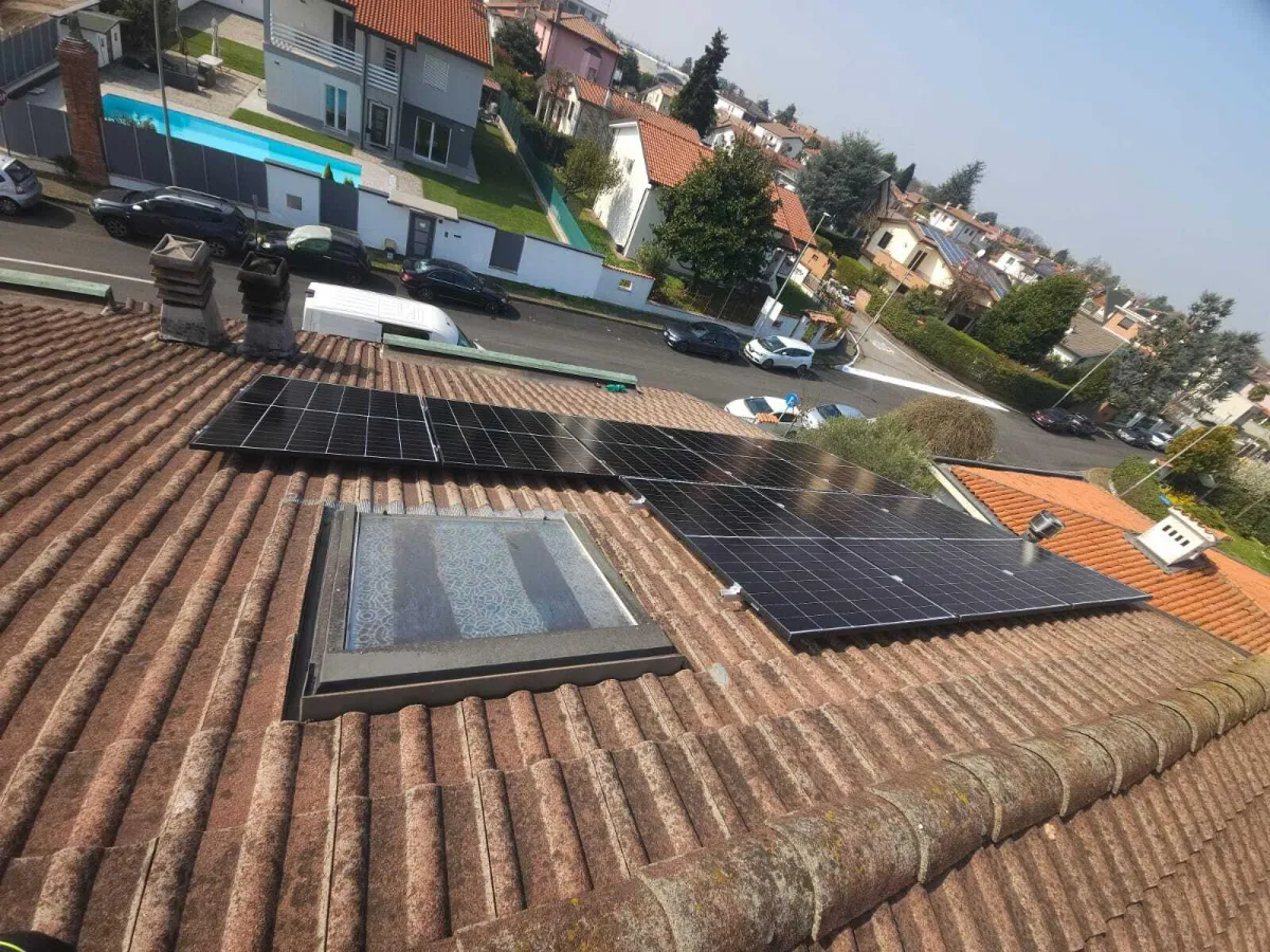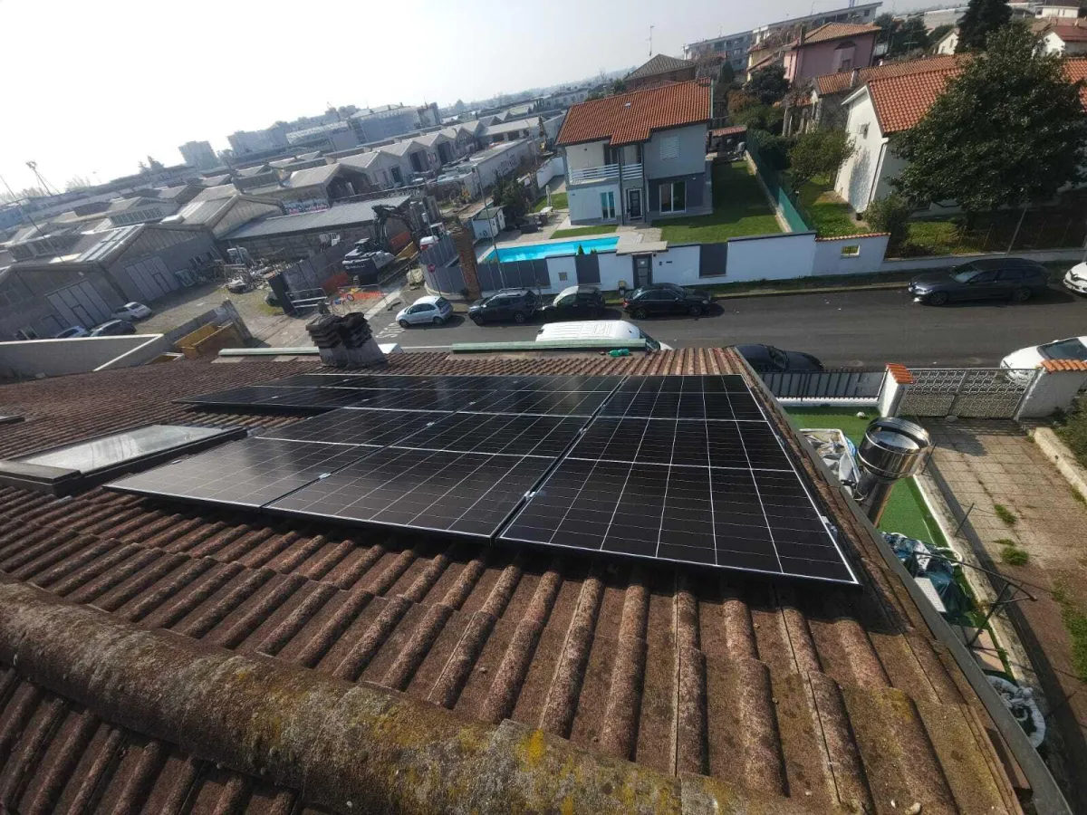 Un impianto fotovoltaico completo con accumulo da 5,12 kWh, realizzato per Luciano Panarelli di Trezzano sul Naviglio, per ridurre i costi energetici e aumentare l'indipendenza dalla rete.